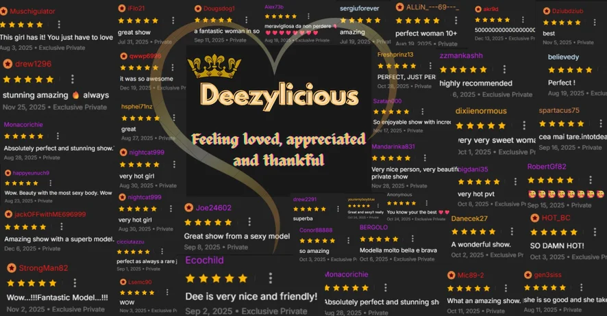 🍒 Welcome to the sweetest addiction you'll ever crave — I'm Deezylicious, your irresistible mix of naughty & nice. With a cheeky smile, teasing curves, and a taste for fun, I love turning fantasies into playtime. 💋 I’m playful, a little wild, and I love when you take control... or beg me to. Expect giggles, gasps, and maybe a few blushes. 💄 Toys? Of course. Kinks? Ask me. Rules? Just one: Be sweet and tip deep 😘 🌶️ Let’s make delicious memories together — press that follow & don’t be shy... I might bite, but only if you ask nicely 💕